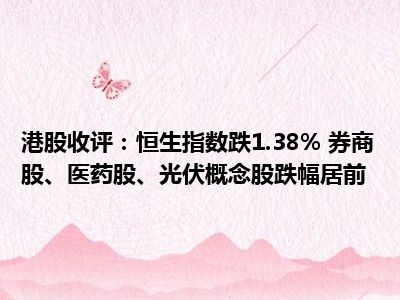 港股收评:恒生指数跌1.38% 券商股、医药股、光伏概念股跌幅居前