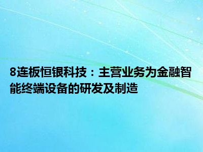 8连板恒银科技:主营业务为金融智能终端设备的研发及制造