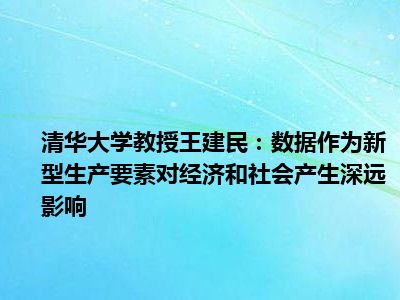 清华大学教授王建民:数据作为新型生产要素对经济和社会产生深远影响